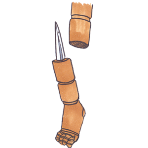 Eine Abschussvorrichtung, die Siegel verschießen kann, die aber flugfähig sein müssen (z.b. Blendsiegel ja, Kibaku nein). Hat fünf Inventarplätze und kann einen Gegenstand pro Runde verschießen. Vor Abschuss muss angesagt werden, wann das Siegel zünden soll, es ist dabei aber maximal so möglich zu timen wie mit Kayaku 3 (was auch vorhanden sein muss). Es kann nur eine solche Vorrichtungen in einer Runde benutzt werden, unabhängig von der Puppenanzahl. |