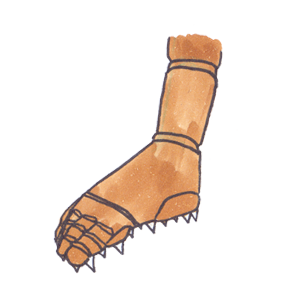 Die Füße der Puppe werden mit aus/einfahrbaren Spikes versehen um ihr einen besseren Stand zu verleihen. Gleichzeitig richten Tritte der Puppe Wunden wie 1 Kunai an, wenn sie ausgefahren sind. |