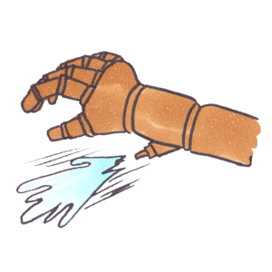 Eine Schussvorrichtung, die das Handgelenk der Puppe eingebaut wird. Zum Abfeuern wird die Hand nach oben oder unten weggeklappt, sodass geschossen werden kann. Fasst bis zu 6 Gegenstände. Kann pro Runde 1o.2 Gegenstände verschießen. |